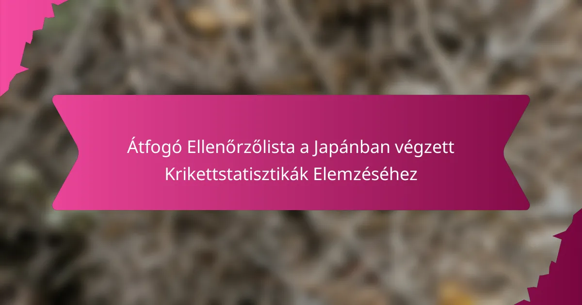 A krikett statisztikák elemzése Japánban elengedhetetlen a játékosok és csapatok teljesítményének megértéséhez, a kulcsfontosságú mutatók közé tartozik a ütési és a dobási átlag, a mérkőzések kimenetele és a csapatok rangsora. Különböző adatforrások, például hivatalos krikett szövetségek és sportelemző platformok kihasználásával a rajongók értékes betekintést nyerhetnek a játékba. A megfelelő adat-elemző eszközök használata tovább fokozhatja ezt a megértést, különböző szintű szakértelem és elemzési igények kielégítésével.